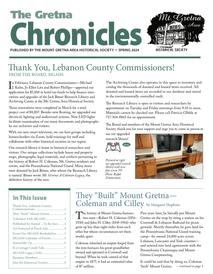 PO Box 362, 206 Pennsylvania Ave., Mount Gretna, PA